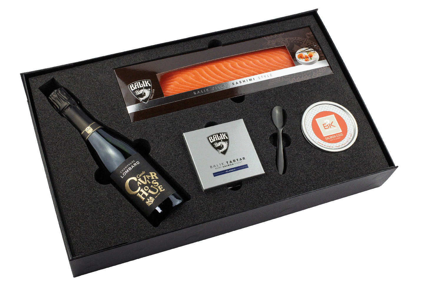 • 1 Fillet Sashimi Style, ca. 320 g • 1 Balik Tartar „Classic“, 100 g • 1 Balik Kitchen Salmon...mehr